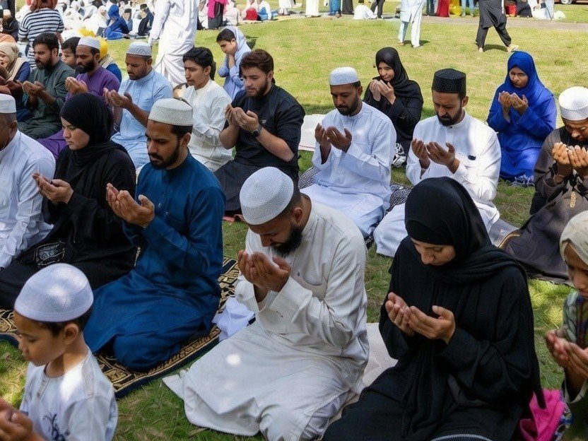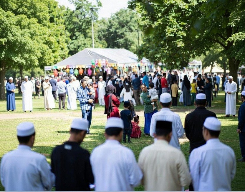 In the UK you will see massive open-air prayers in parks when the weather allows — or inside mosques and community halls. Popular venues include: